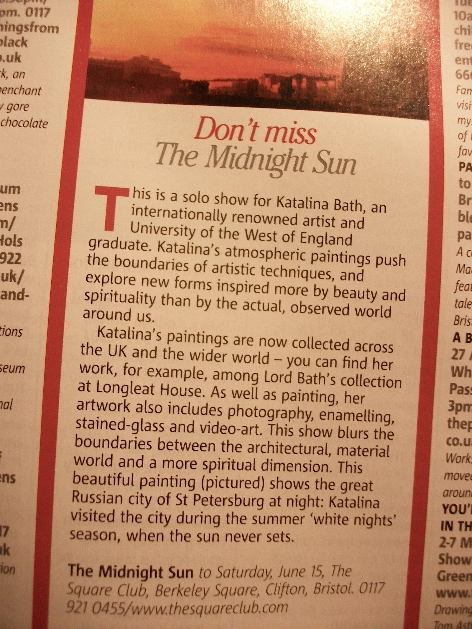 A show of original prints by Katalina at The Square Cub Galleries in Bristol from the 18 April to 10 June 2013 was curated by Nicol Phillips.